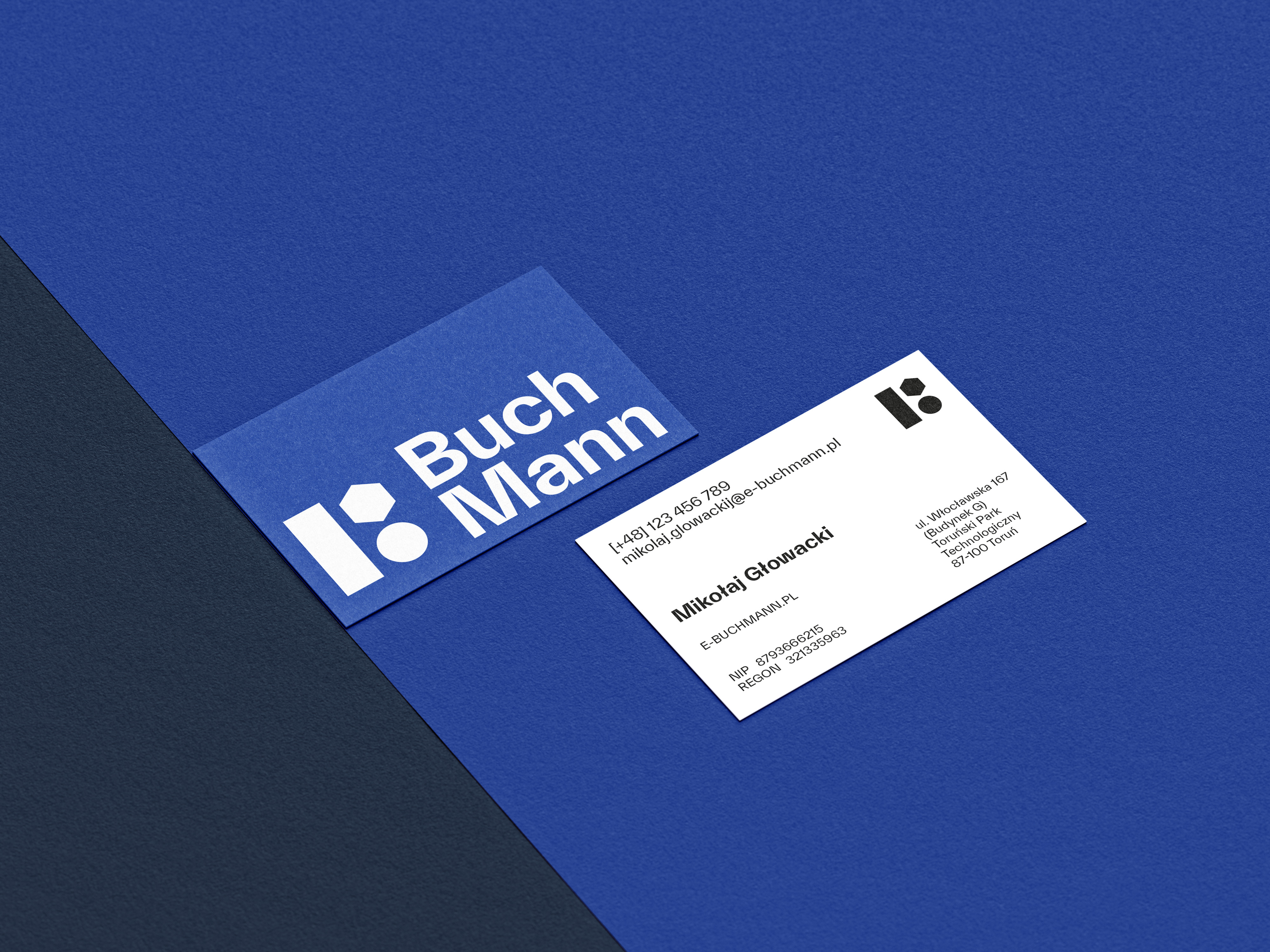 Logotyp „BuchMann” opiera się na prostych figurach geometrycznych i mocnej typografii. Prostokąt oznacza stabilność i porządek, kluczowe w księgowości i finansach. Sześciokąt nawiązuje do technologii i struktury, symbolizując nowoczesne rozwiązania IT. Koło sugeruje pełnię i ciągłość procesów, podkreślając kompleksową obsługę. Razem budują obraz firmy łączącej tradycyjną rzetelność z innowacyjnym podejściem.