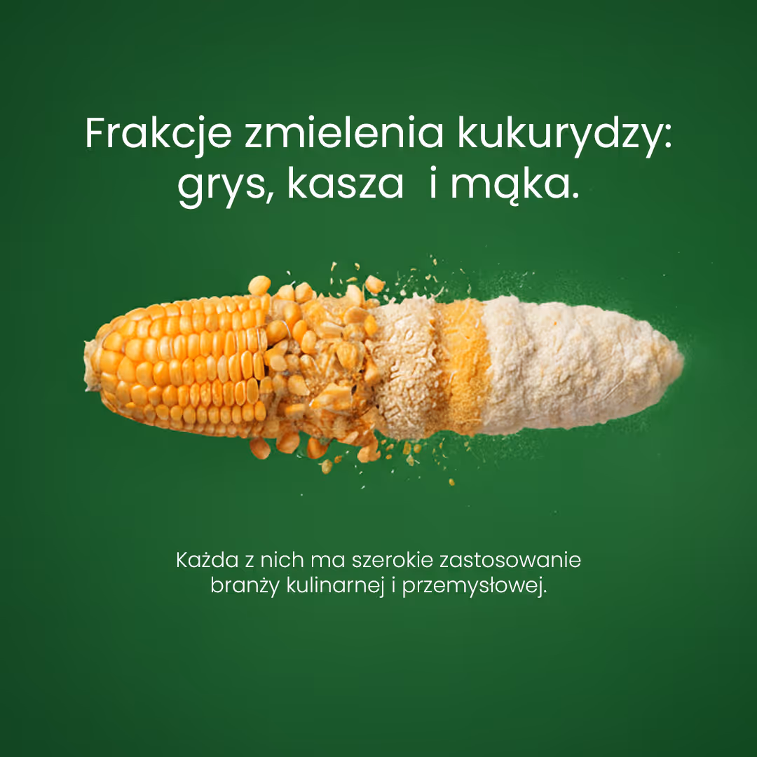 Identyfikacja wizulana - spójna narracja: od natury przez produkt do technologicznej siły firmy, która przetwarza ziarno w nowoczesne rozwiązania dla przemysłu spożywczego.